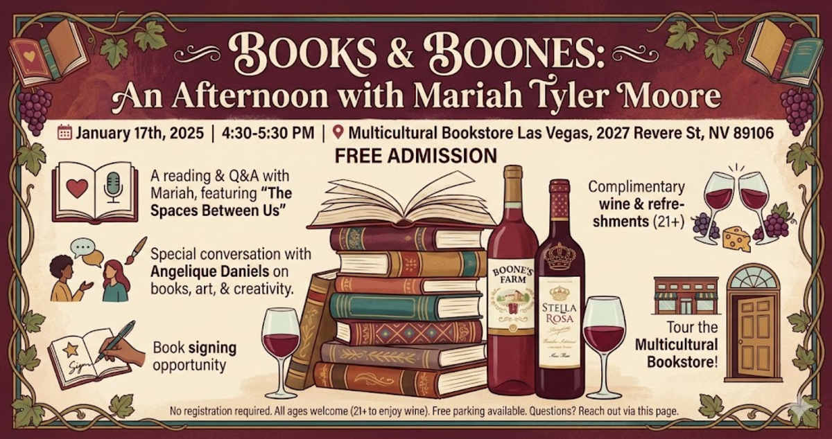 Join author Mariah Tyler Moore for a relaxed afternoon of storytelling, wine, and conversation at one of Las Vegas's most beloved independent bookstores!
